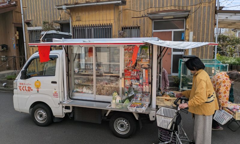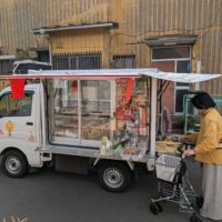 金杉では週2回、移動販売車がホームの近くにやってきます。ご利用者様にはとても便利な様子です。